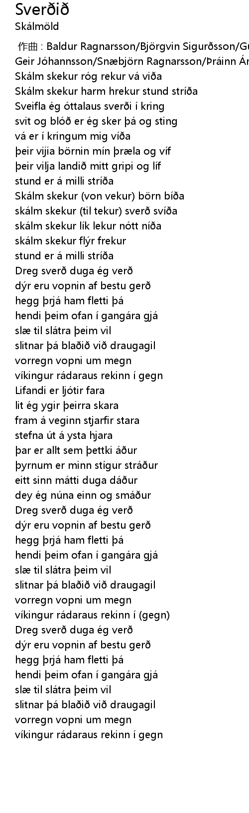 | [00:44.000] | Sveifla ég óttalaus sverði í kring |