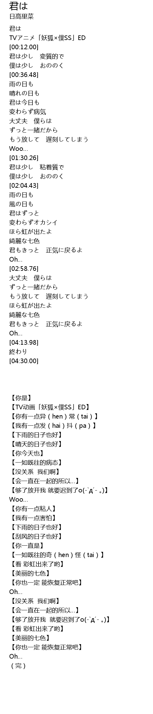 【TV动画「妖狐×僕SS」ED】 |