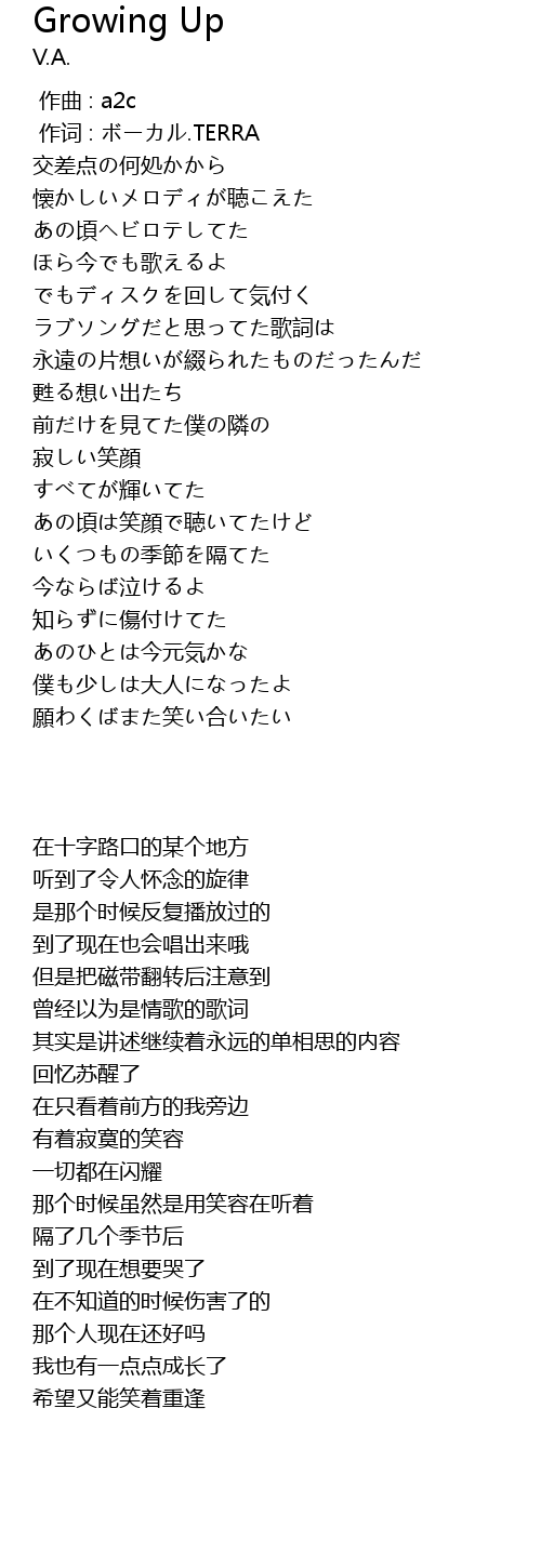 | 歌曲 | Growing Up |