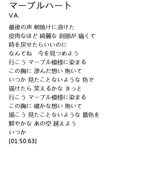 | [01:14.41] | 行こう マーブル模様に染まる |
