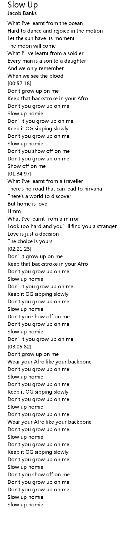 | [01:10.18] | Slow up homie |