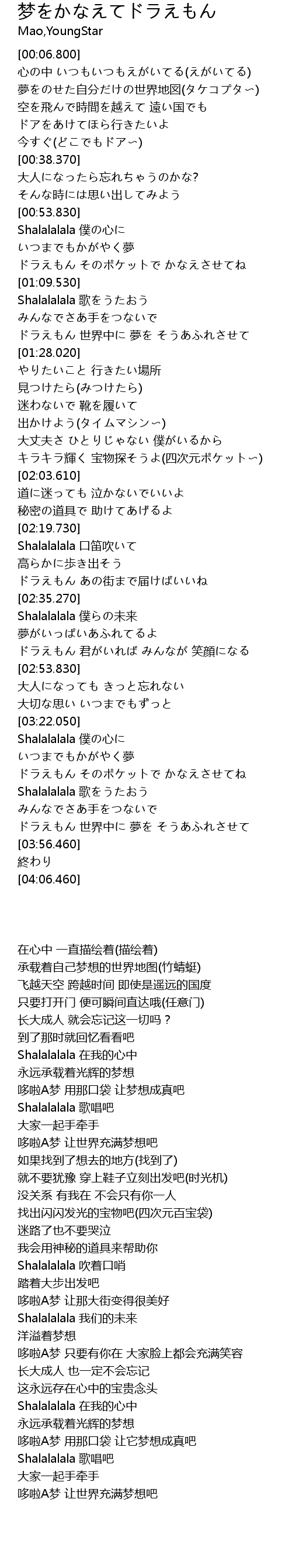 | [03:46.250] | 哆啦A梦 让世界充满梦想吧 |