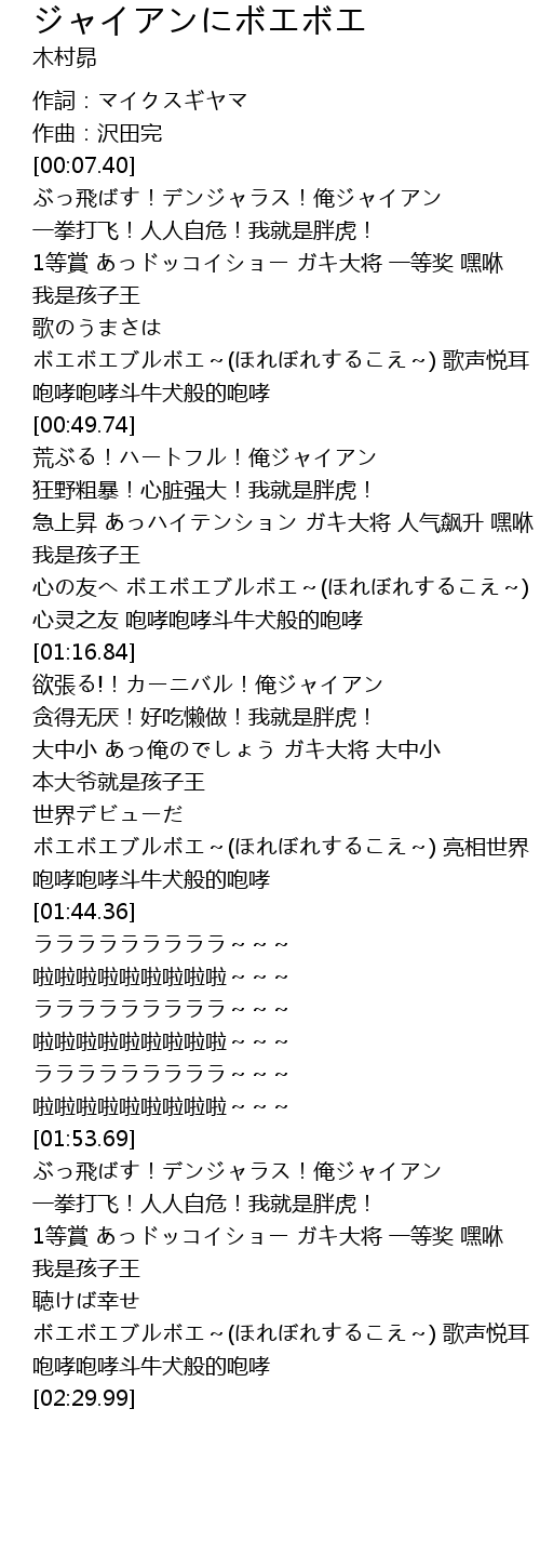 | [02:12.93] | ぶっ飛ばす!デンジャラス!俺ジャイアン 一拳打飞!人人自危!我就是胖虎! |
