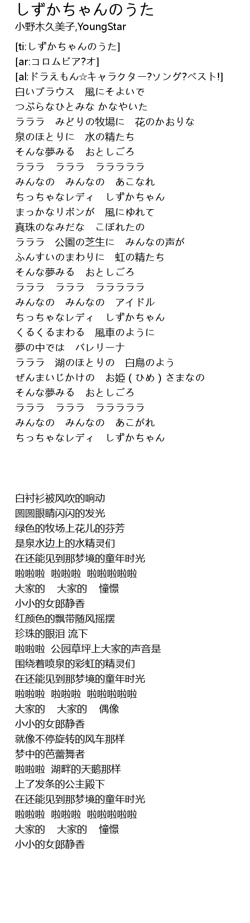| [ti:しずかちゃんのうた] | |