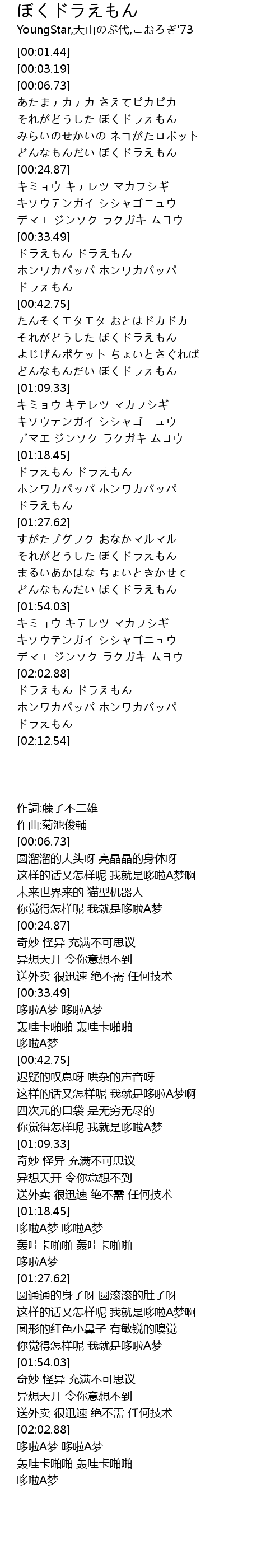 作詞:藤子不二雄 |