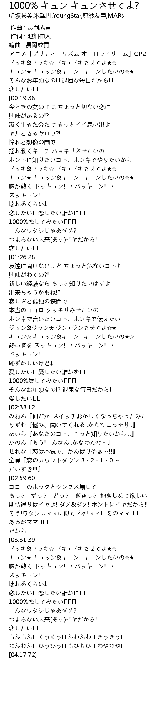 | [00:59.85] | キュン★ キュッン&キュン+キュンしたいの☆★ |