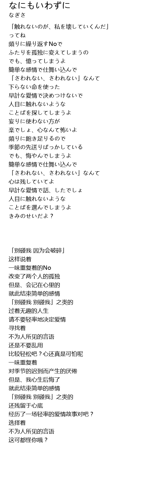 | [02:38.71] | 「さわれない、さわれない」なんて |
