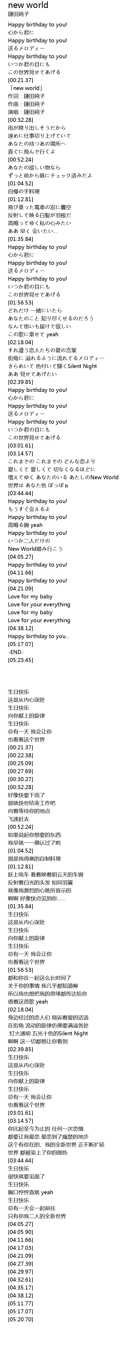 | [00:22.38] | 「new world」 |