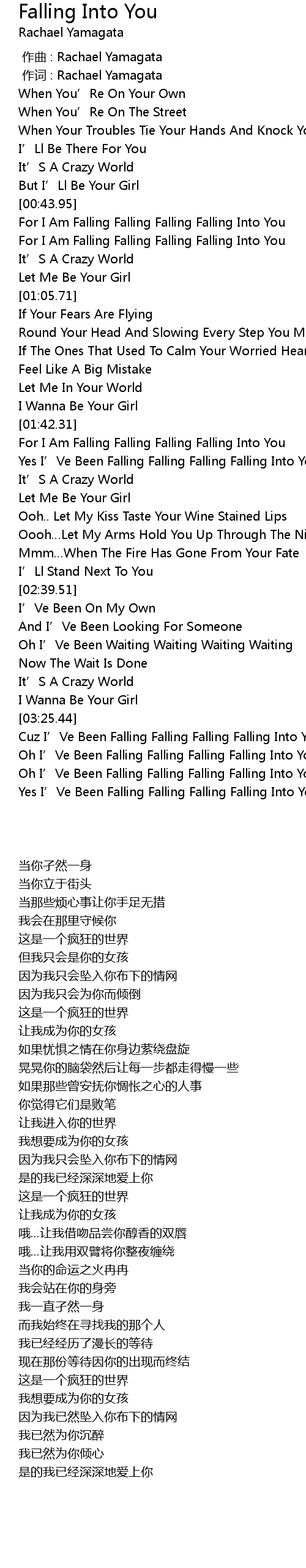 | [00:50.93] | For I Am Falling Falling Falling Falling Into You |