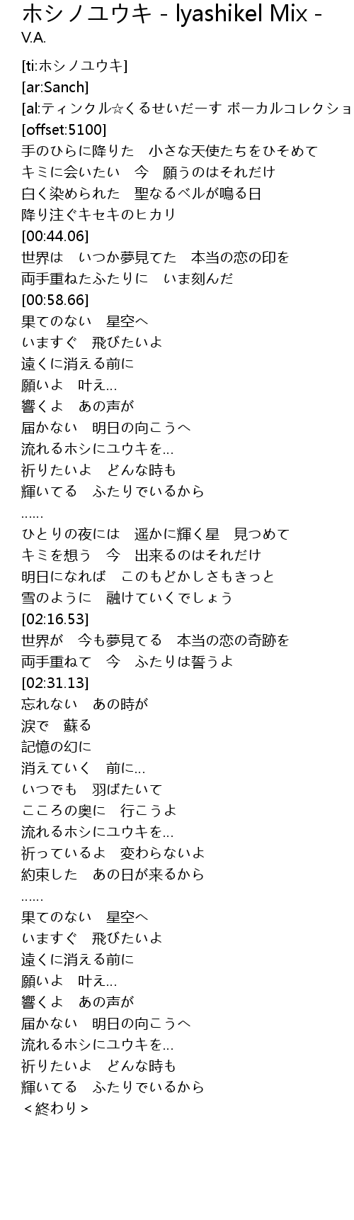 | [00:39.11] | 降り注ぐキセキのヒカリ |