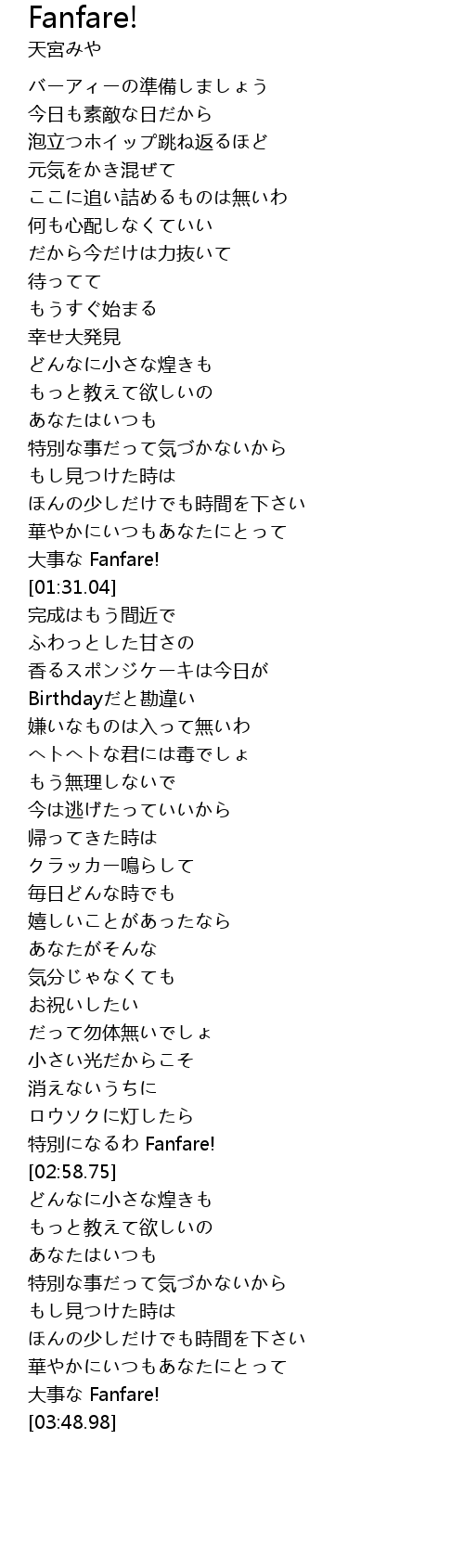 特別になるわ Fanfare! |