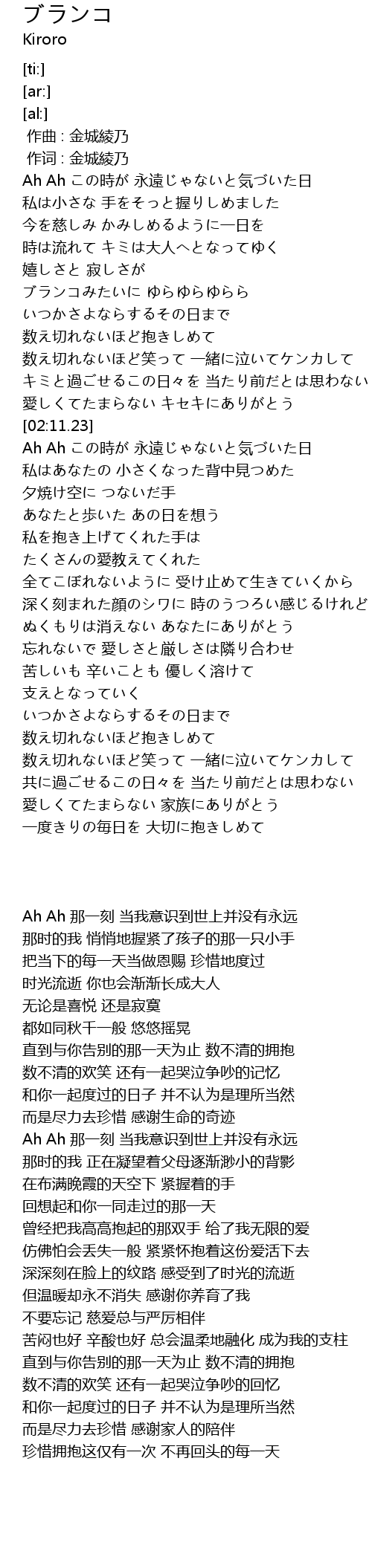 | [03:41.59] | ぬくもりは消えない あなたにありがとう |