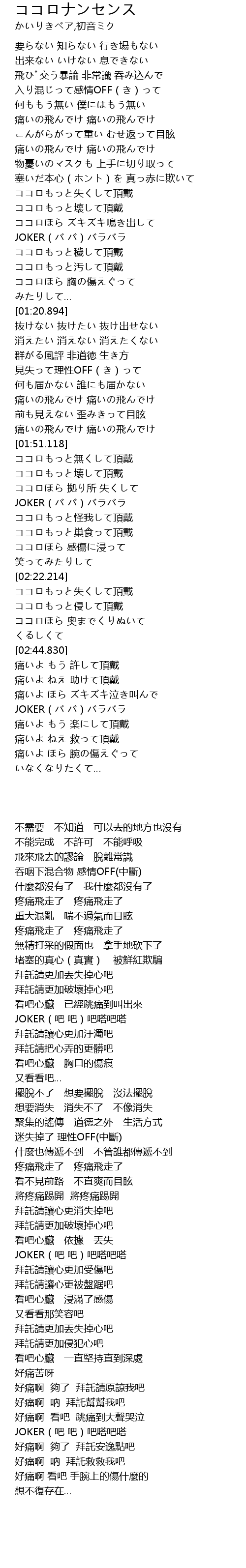 | [01:53.686] | ココロもっと無くして頂戴 |