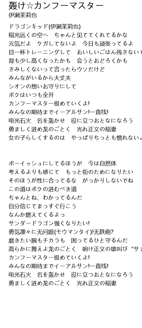 | 歌曲 | 轰け☆カンフーマスター |