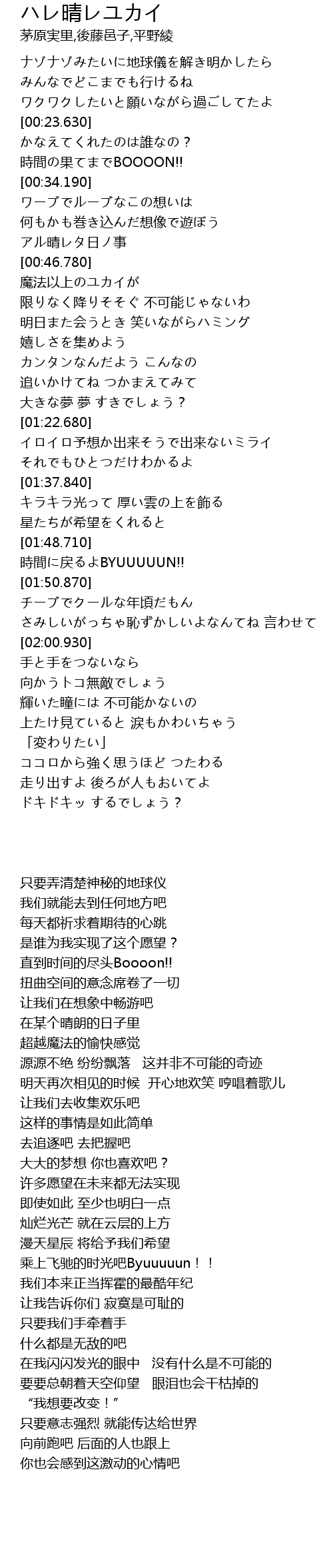 | [00:23.350] | ワクワクしたいと願いながら過ごしてたよ |
