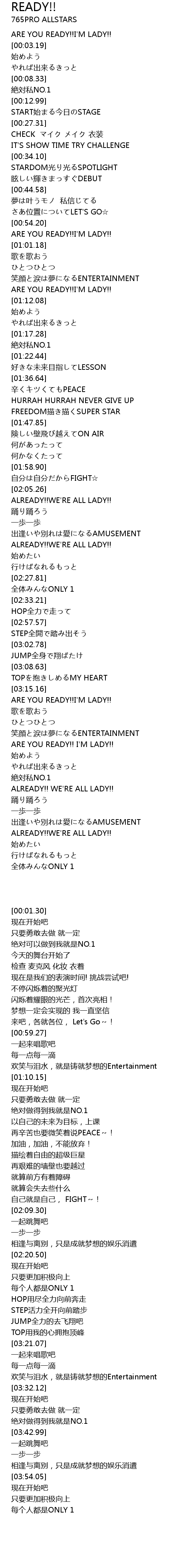 | [01:10.15] | ARE YOU READY!!I'M LADY!! |