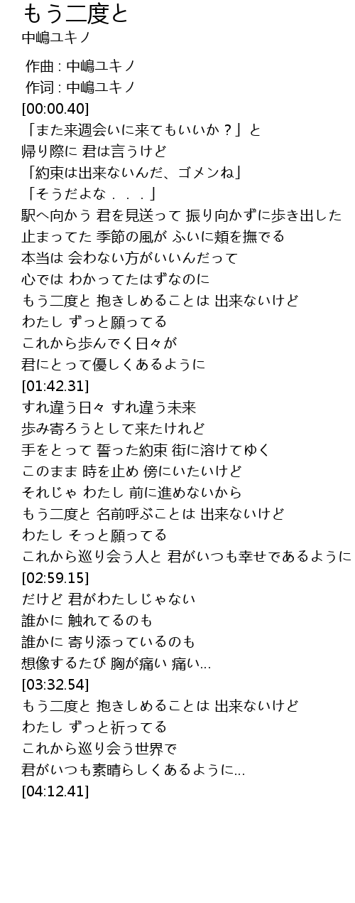 | [00:00.000] | 作曲 : 中嶋ユキノ |