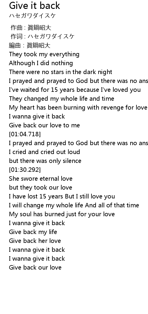 | [00:01.000] | 作词 : ハセガワダイスケ |