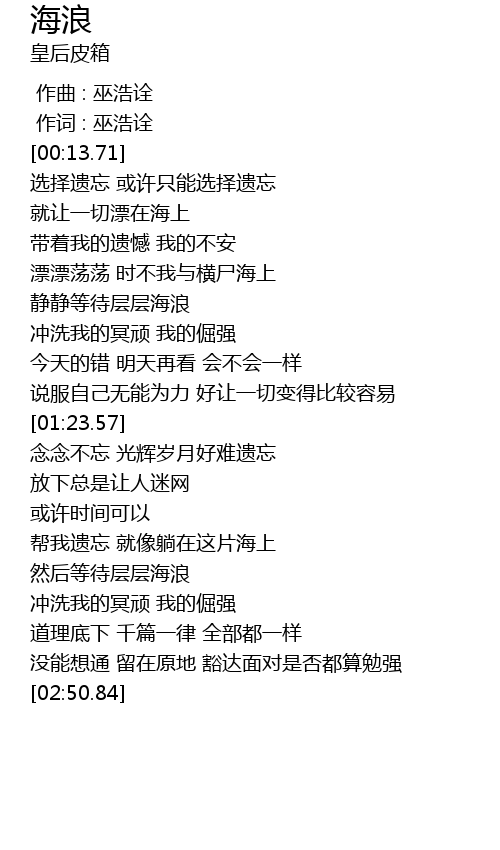 | [00:01.000] | 作词 : 巫浩诠 |