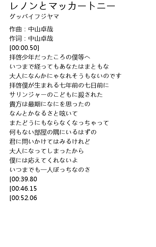 | [00:23.57] | サリンジャーのこどもに殺された |