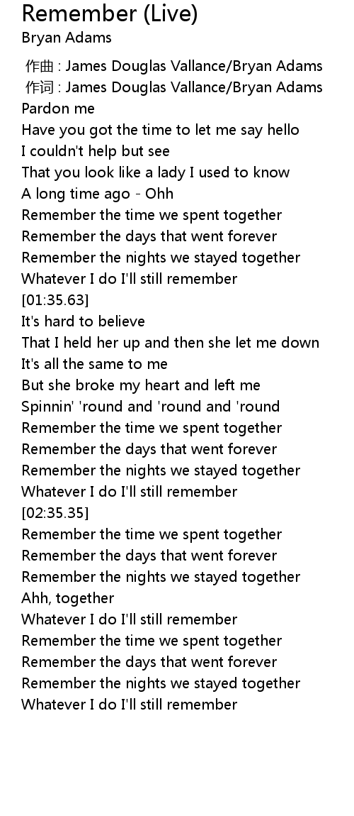 | [03:01.67] | Remember the time we spent together |
