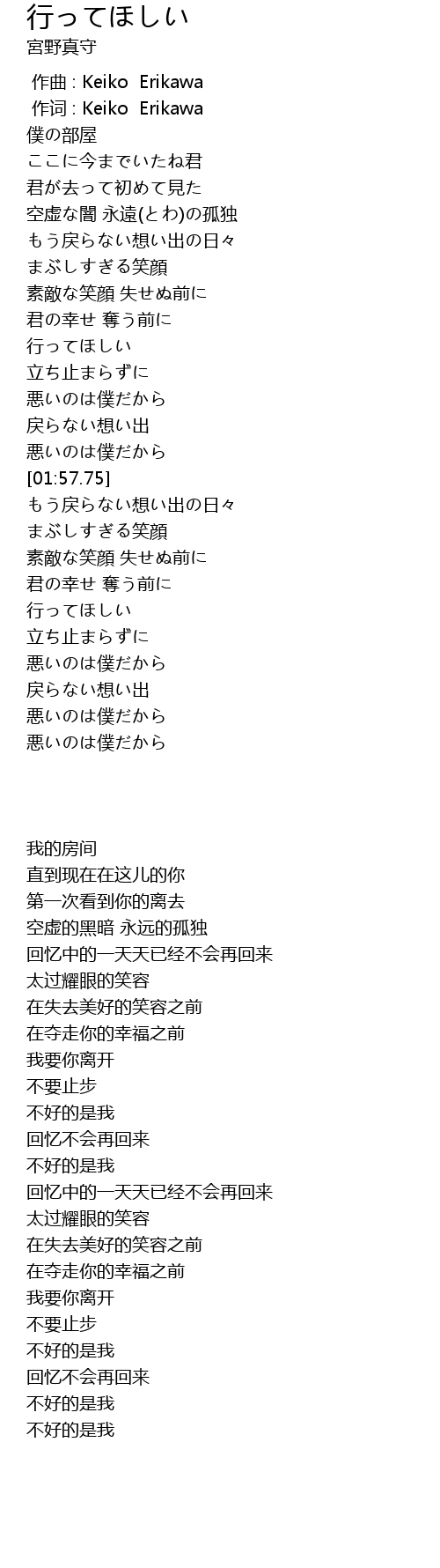 | [00:01.00] | zuo ci : Keiko Erikawa |