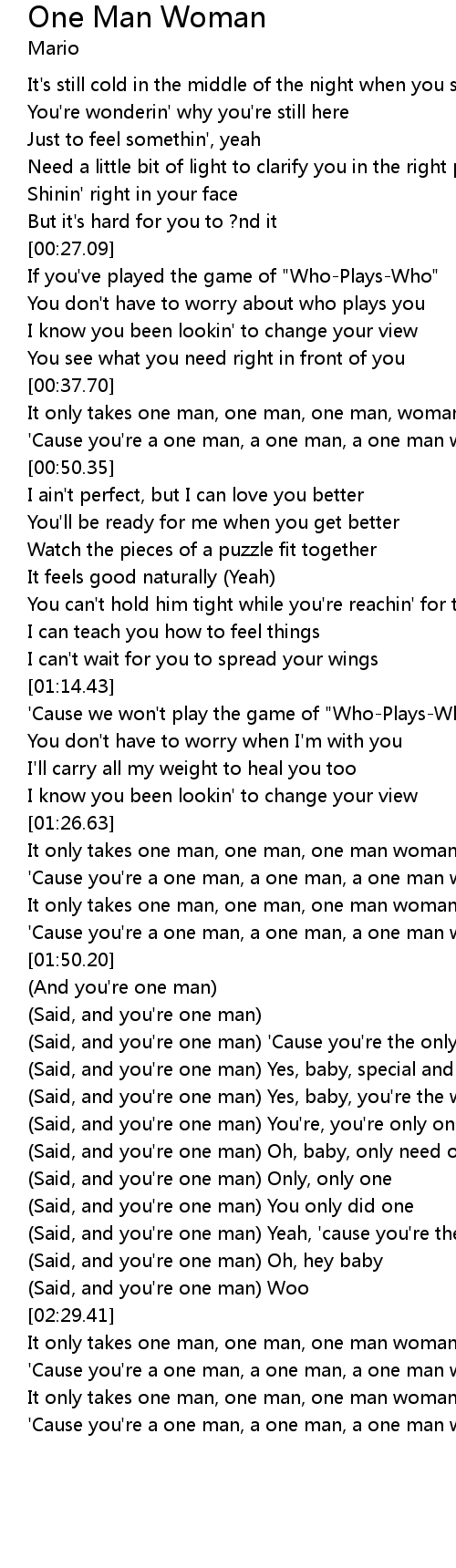 'Cause you're a one man, a one man, a one man woman, yeah |