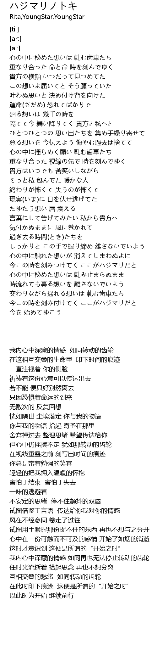 | [00:21.80] | 心の中に秘めた想いは 軋む歯車たち |