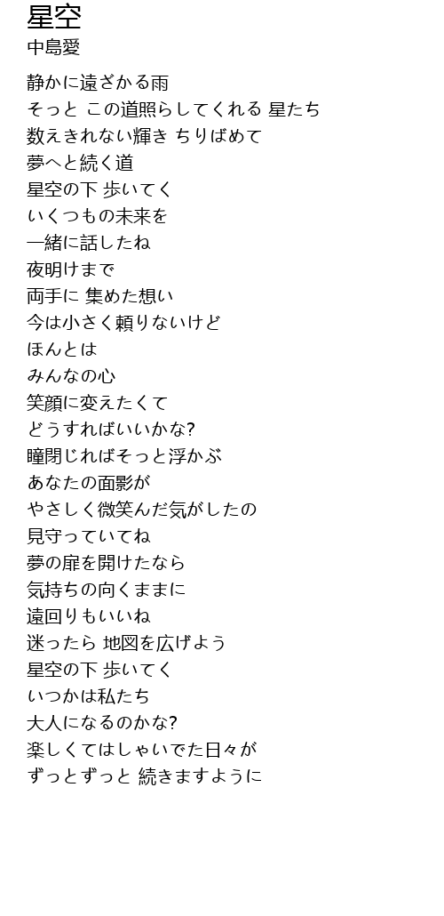 | [00:27.180] | そっと この道照らしてくれる 星たち |