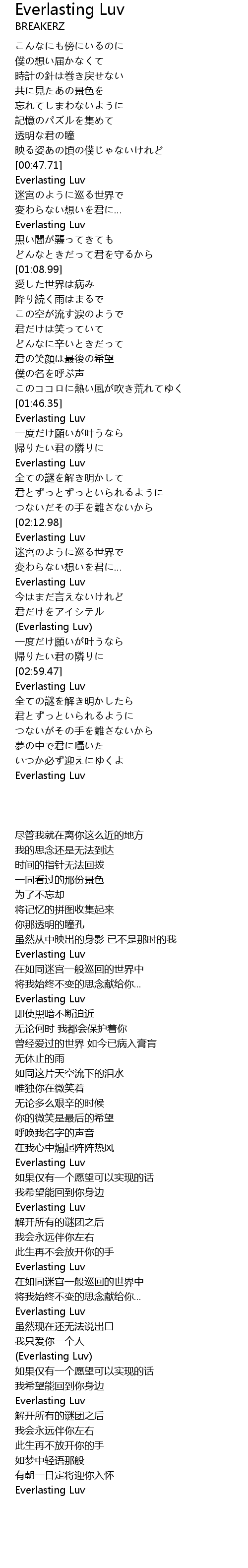 | [02:50.66] | (Everlasting Luv) |