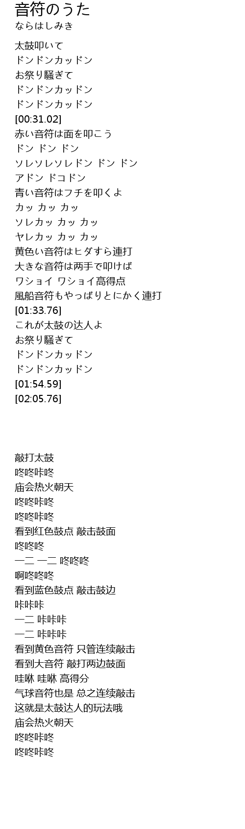 | [01:36.65] | これが太鼓の达人よ |