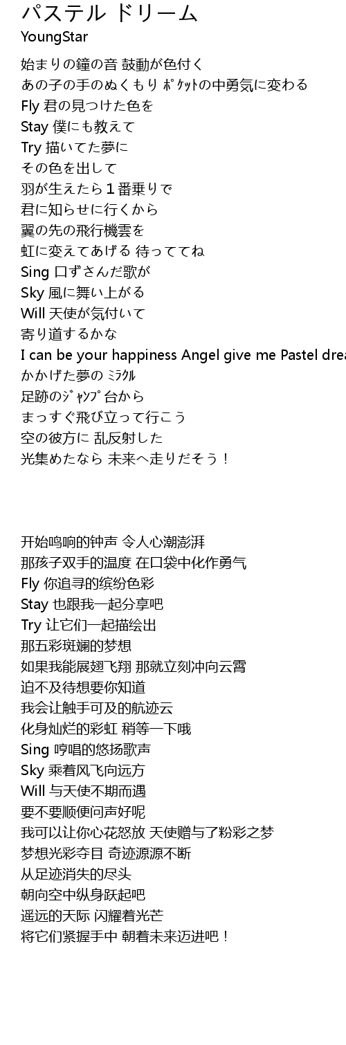 | [01:52.70] | I can be your happiness Angel give me Pastel dream |