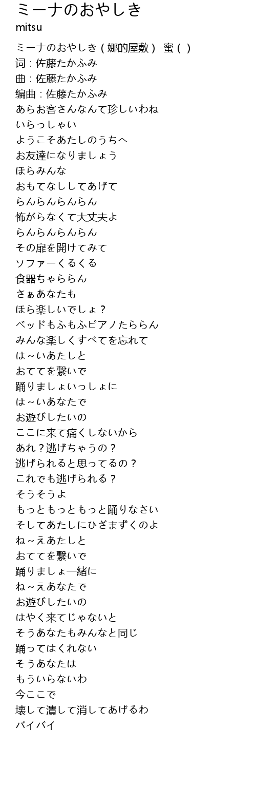 | [00:00.00] | ミーナのおやしき(娜的屋敷)-蜜() |