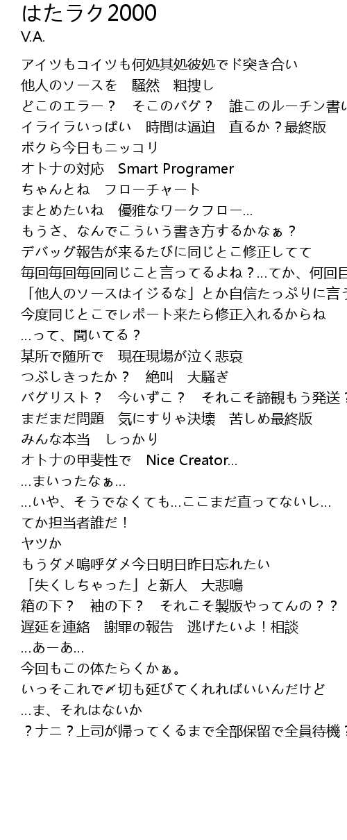 | バグリスト? 今いずこ? それこそ諦観もう発送? | |