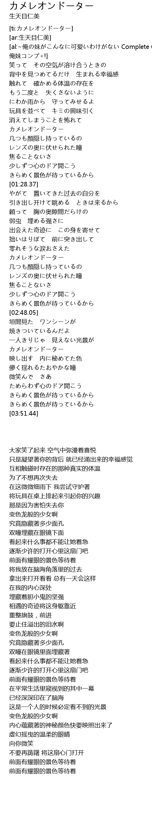 | [01:06.24] | レンズの奥に伏せられた瞳 |