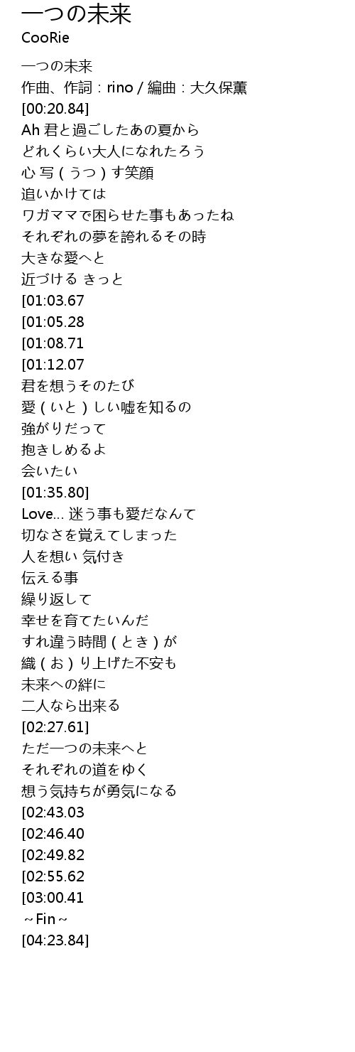 | [00:00.79] | 一つの未来 |