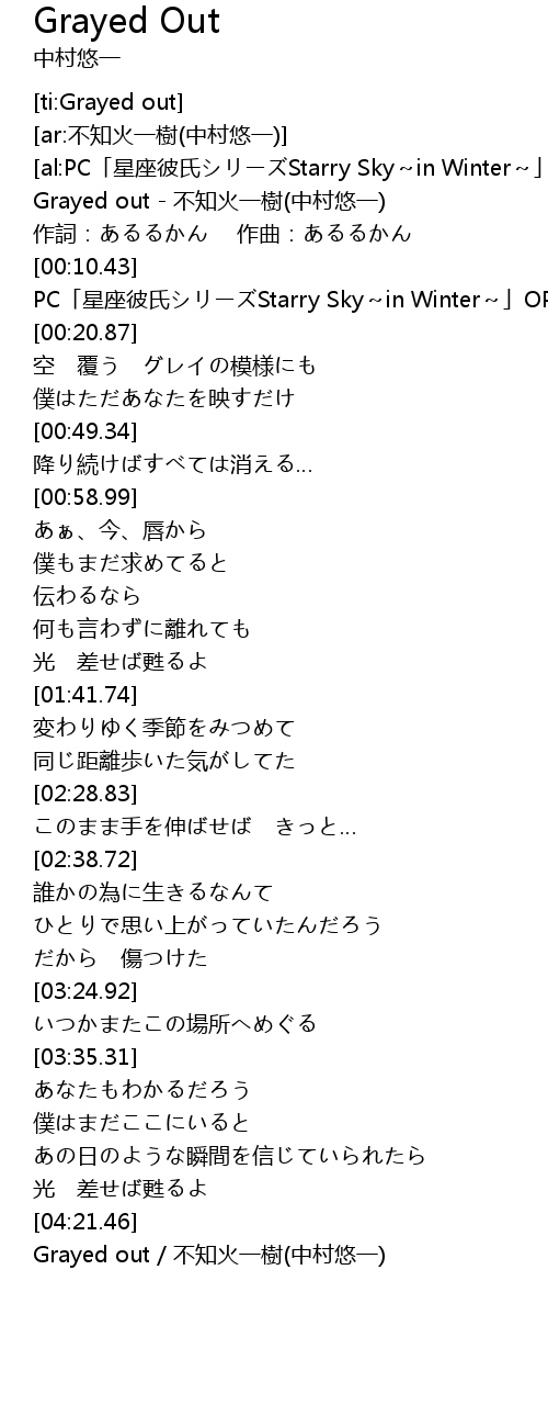 | [04:33.18] | Grayed out / 不知火一樹(中村悠一) |