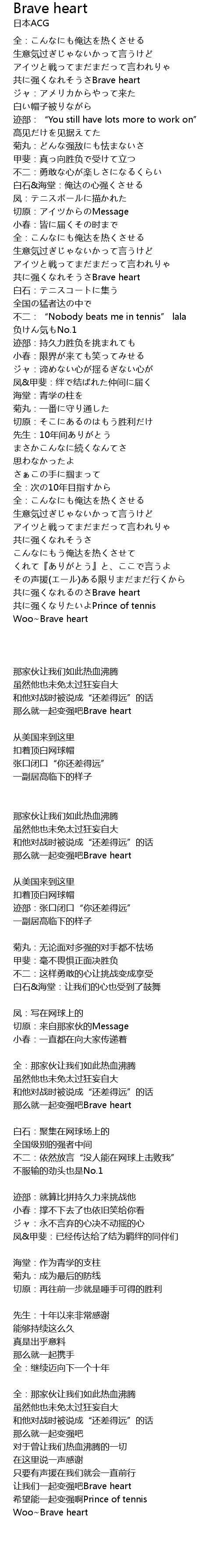 | [03:54.94] | 让我们一起变强吧Brave heart |