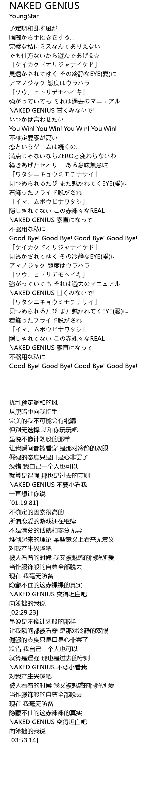 | [02:20.67] | NAKED GENIUS 变得坦白吧 |