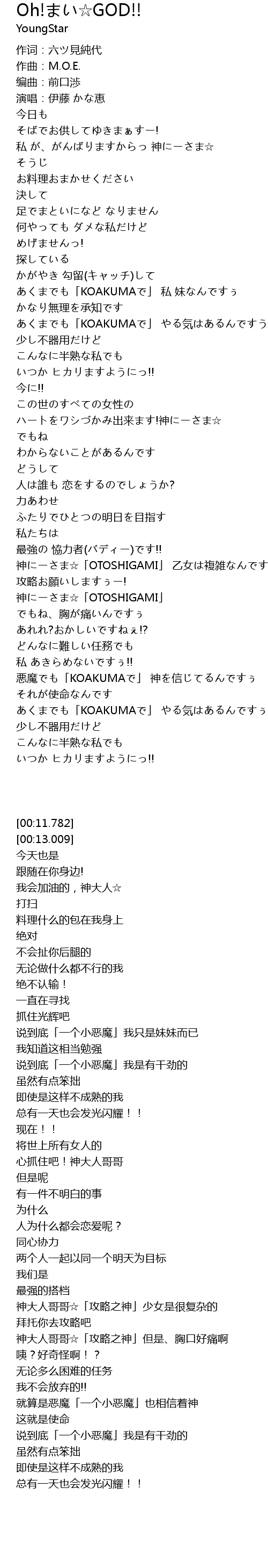 | [02:27.252] | 神にーさま☆「OTOSHIGAMI」 乙女は複雑なんですぅ |