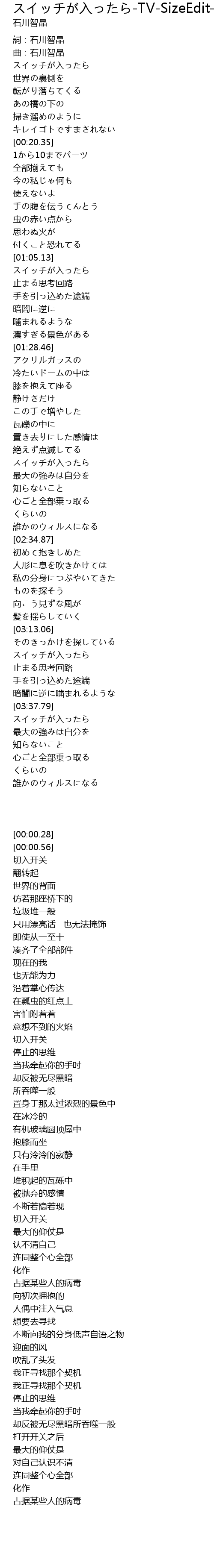 スイッチが入ったら-TV-SizeEdit- 歌词