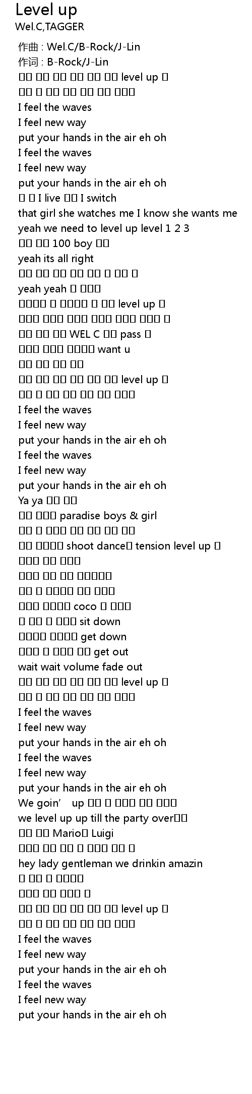 | [02:34.215] | 여기 불려 모인 친구 모두 빨리 level up 해 |