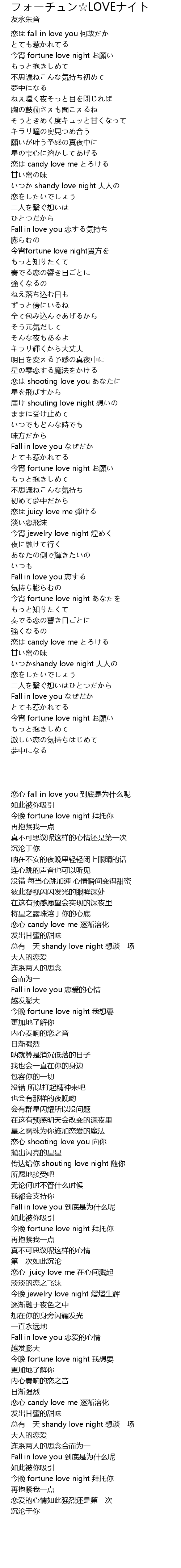 | [02:46.880] | 今宵 fortune love night お願い |