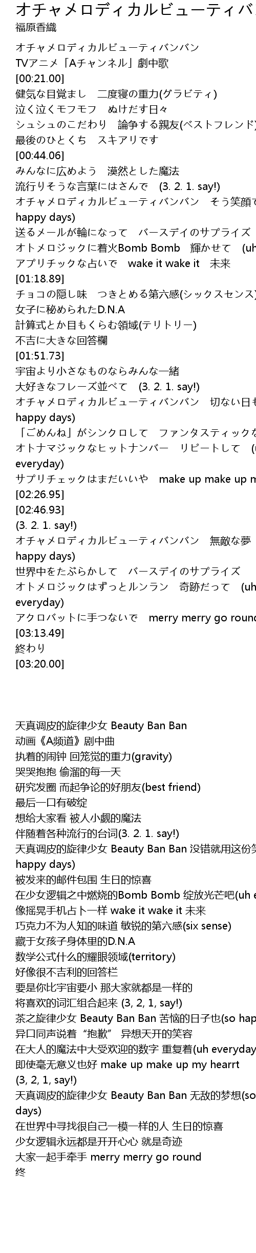 | [02:03.69] | 茶之旋律少女 Beauty Ban Ban 苦恼的日子也(so happy days) |