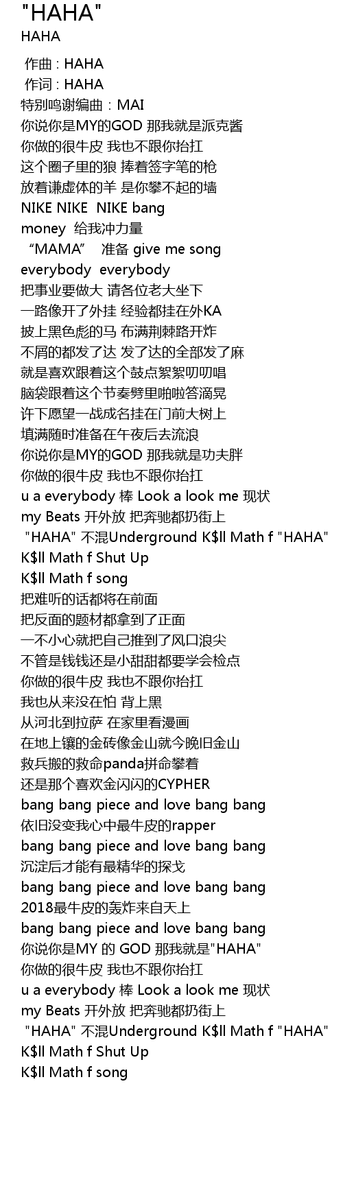 [00:56.000] "HAHA" 不混Underground K$ll Math f "HAHA"