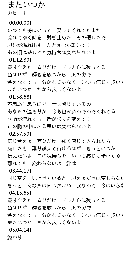 [01:13.11] 巡り合えた 喜びだけ ずっと心に残ってる