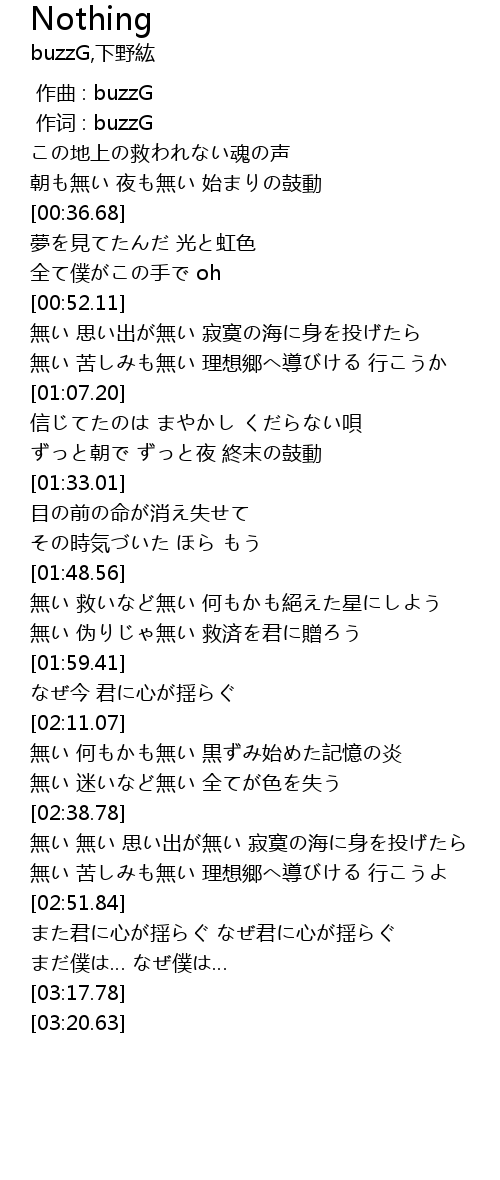 | [00:58.13] | 無い 苦しみも無い 理想郷へ導びける 行こうか |