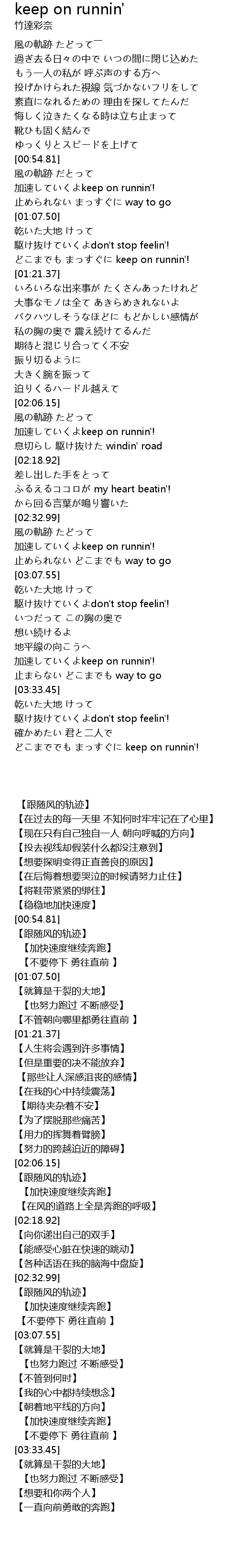 | [00:58.39] | jiā sù keep on runnin'! |