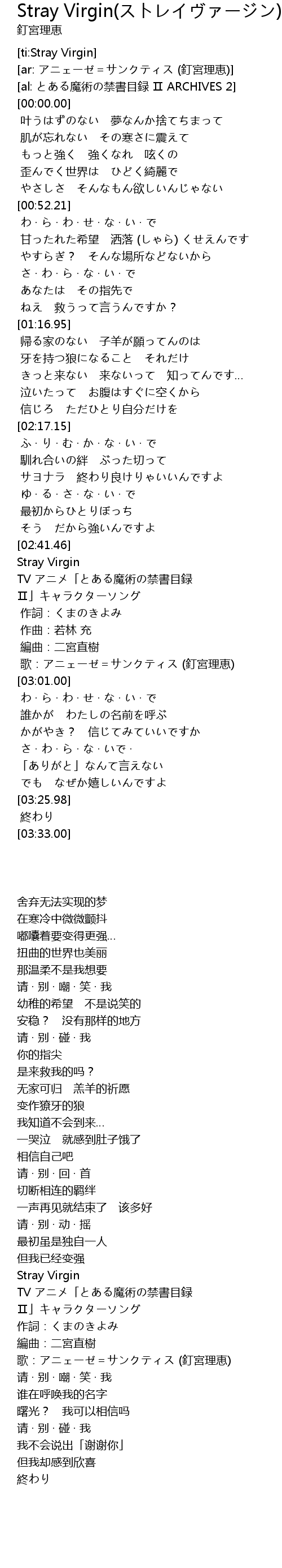 | [02:46.00] | TV アニメ「とある魔術の禁書目録 Ⅱ」キャラクターソング |