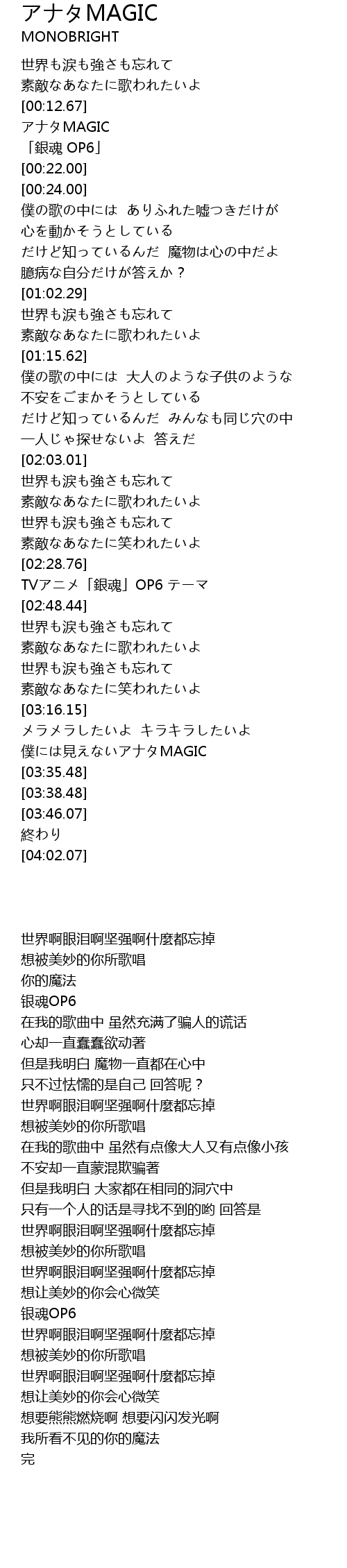 | [03:22.45] | 僕には見えないアナタMAGIC |